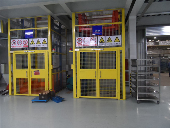 导轨式升降平台是一种垂直升降作业的简易升降货梯。此设备采用液压油缸顶升、链条及钢丝绳拉动工作台,起升到目标高度后,通过限位开关自动与楼层平层。此设备适用于工业厂房、餐厅、酒楼、立体车库和地下车库等场所二、三层或多楼层间的货物传输。最低高度在150-300mm,尤其适合不能开挖坑的工作场所。安装设备时无须上部吊点,特别适合顶层高度不能到达机房安装要求的场合等比较难解决的狭小空间。形式多样化。设备运行平稳,操作简单可靠,具有液压,电器多种保护,货物传输经济便捷。建筑物不同楼层货物升降,快速上下,可更便捷的将大型物件运达各个楼层。产品结构坚固,承载量大,升降平稳,安装维护简单方便,是经济实用的楼层间替代电梯的理想货物输送设备。